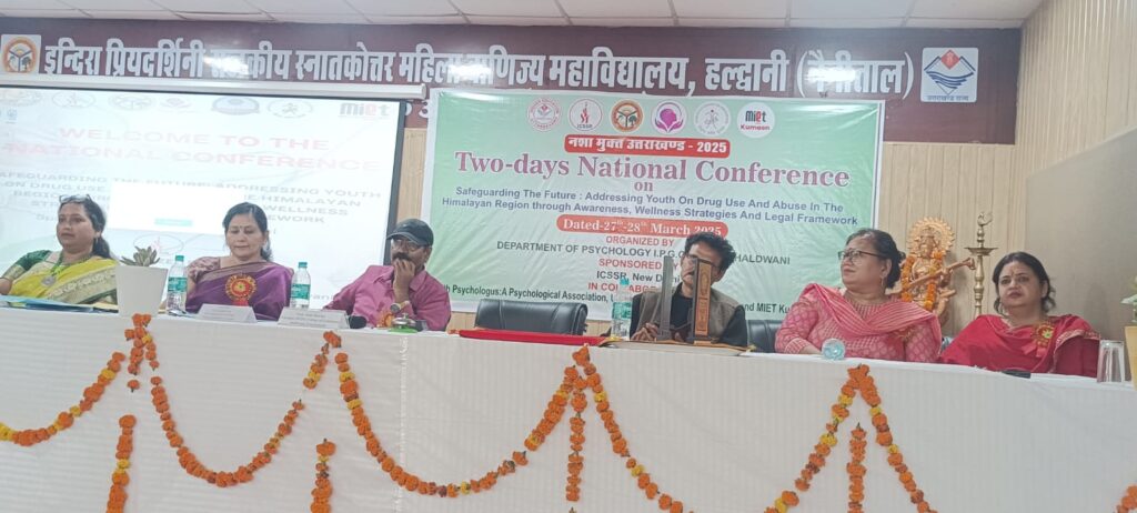 आज दिनांक 28 मार्च 2025 को इंदिरा प्रियदर्शिनी राजकीय स्नातकोत्तर महिला वाणिज्य महाविद्यालय हल्द्वानी में आम्रपाली विश्वविद्यालय एवं .एम आई. टी. हल्द्वानी के संयुक्त तत्वाधान में आई.सी.एस.एस.आर. द्वारा प्रायोजित दो दिवसीय राष्ट्रीय संगोष्ठी (भविष्य की सुरक्षा हिमालय क्षेत्र में युवाओं को नशीली दवाओ के सेवन के दुरुपयोग द्वारा जागरूकता) के द्वितीय दिवस में सर्वप्रथम आयोजन सचिव डॉ विभा पांडे द्वारा मुख्य अतिथि प्रोफेसर आभा शर्मा ( प्राचार्य महिला महाविद्यालय हल्द्वानी ) ,मंचासीन अतिथियों का आभार व्यक्त किया गया तथा मुख्य अतिथि प्रोफेसर आभा शर्मा एवं सभी मंचासीन अतिथियों का महाविद्यालय के प्राध्यापकों द्वारा बैच लगाकर पुष्पगुच्छ भेंट कर स्वागत किया गया। तत्पश्चात प्रोफेसर मधुरिमा प्रधान ( विभागाध्यक्ष मनोविज्ञान ,लखनऊ विश्वविद्यालय )द्वारा ऑनलाइन वक्तव्य के माध्यम से नशा प्रयुक्त करने वाले व्यक्ति की पहचान को महत्वपूर्ण बताते हुए यह कहा कि यदि कोई नशे का सेवन करने का आदी हो जाता है तो उसे रोकना बड़ा मुश्किल होता है ।इसमे अनेक चुनौतियां आती हैं लेकिन जागरूकता कार्यक्रमों, मनोवैज्ञानिक थेरेपी के द्वारा उनमें सुधार की संभावना है ।साथ ही उन्होंने नकारात्मकता को सकारात्मक में परिवर्तित कैसे करें? इस संबंध में भी विस्तृत जानकारी दी।डॉ ० मालिनी श्रीवास्तव (हिमालयन इंस्टिट्यूट ऑफ़ साइंस) द्वारा बताया गया कि नशीले पदार्थ का दुरुपयोग बीमारी का कारण है। वर्तमान में स्थापित ट्रेनिंग सेंटरों के समक्ष अनेक चुनौतियां हैं, लेकिन हम प्राथमिक मनोवैज्ञानिक समूह का गठन कर इस समस्या से छुटकारा पा सकते है। इसके पश्चात विभिन्न महाविद्यालय के शोधार्थियों एवं प्राध्यापकों द्वारा ऑनलाइन माध्यम से अपने शोध आलेखों का प्रस्तुतीकरण किया गया। डाक्टर प्रदीप पांडेय (जन्तु विज्ञान विभाग) द्वारा राष्ट्रीय संगोष्ठी की रिपोर्ट प्रस्तुत की गई।राष्ट्रीय संगोष्ठी के अवसर पर आयोजित पोस्टर प्रतियोगिता में प्रियांशी रावत ( महिला महाविद्यालय हल्द्वानी) प्रथम,नानूप्रिया पाठक (एम.बी.पी.जी .कॉलेज हल्द्वानी) द्वितीय, तथा तमन्ना भट्ट (महिला महाविद्यालय हल्द्वानी) तृतीय स्थान पर रही ।जबकि प्रभा जोशी एवं निधि (आम्रपाली विश्वविद्यालय) की छात्राओं ने सांत्वना पुरस्कार प्राप्त किया ।संगोष्ठी में शोधार्थियों द्वारा शोध आलेखों का प्रस्तुतीकरण किया गया जिसमें श्रेष्ठ शोध आलेख का पुरस्कार मनोज खंकरियाल , आर्या कौशिक, भानुप्रिया पाठक तथा आन लाइन प्रस्तुतीकरण में सुमन भंडारी ने प्राप्त किया। प्राध्यापको में श्रेष्ठ शोध प्रस्तुतीकरण स्वाति मेलकानी (महिला महाविद्यालय हल्द्वानी) डाक्टर वि